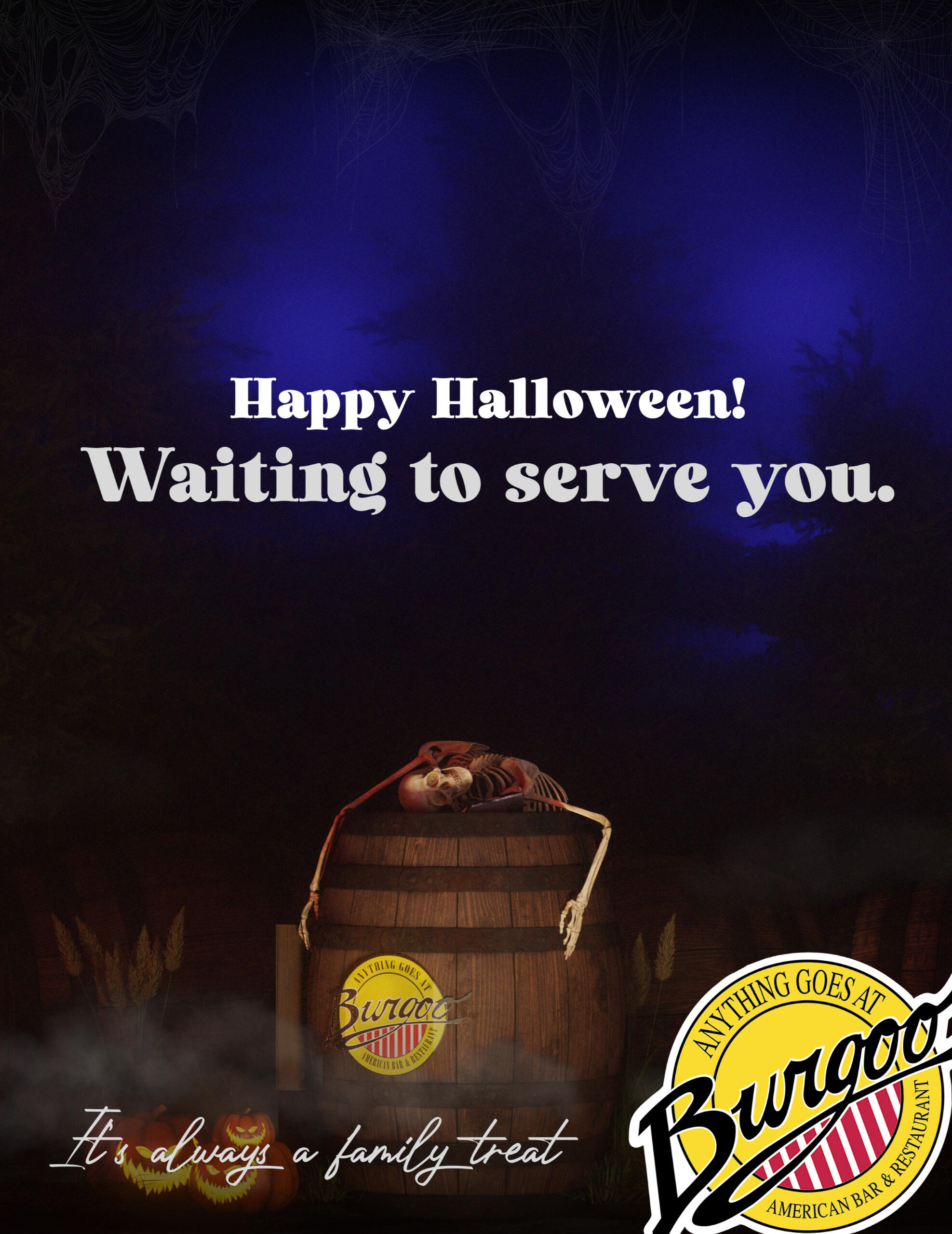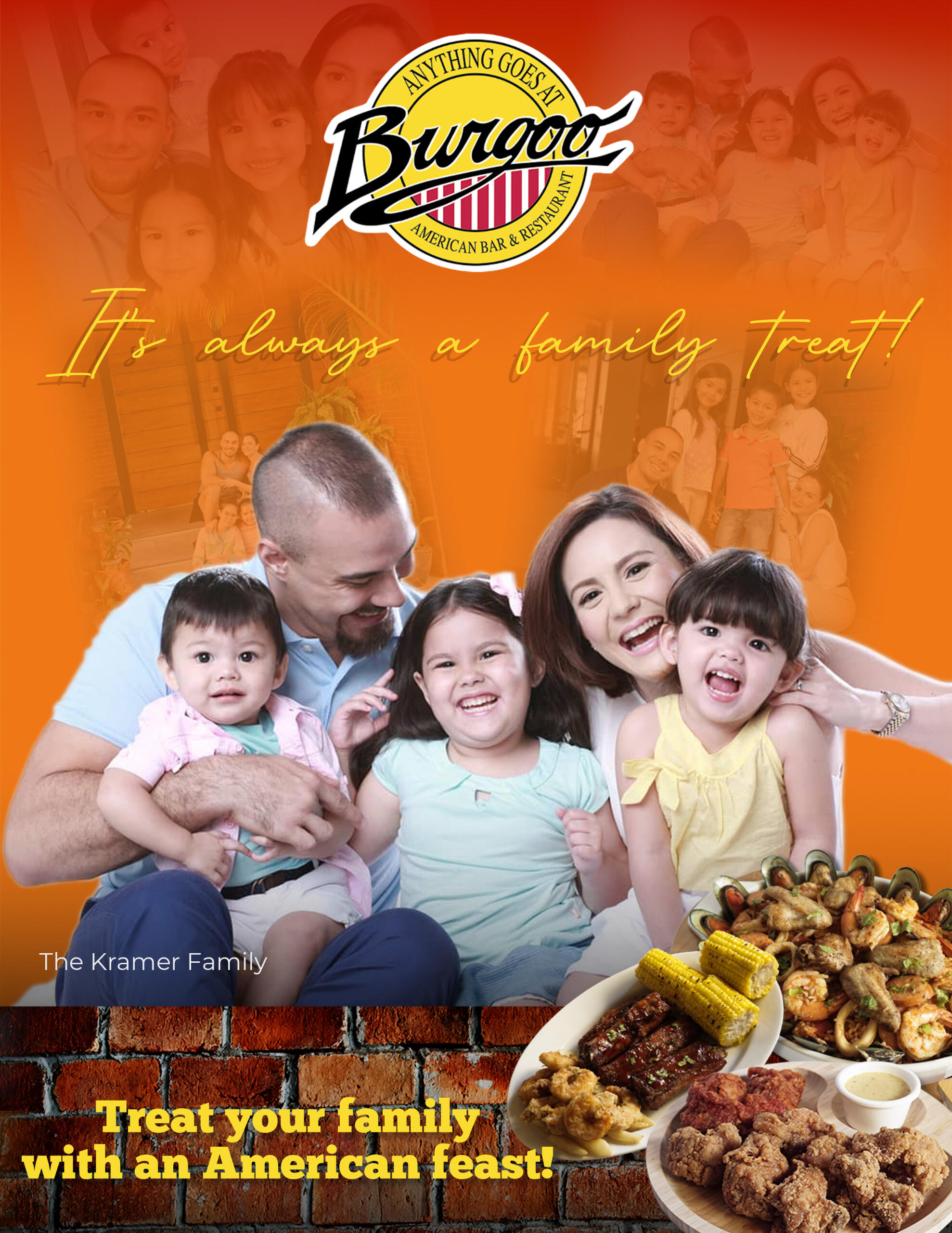 For the advertisement posters, I made Burgoo's barrel table the focal point of the campaign materials. I wanted to give the barrel various roles (e.g Valentine's, Halloween) just as a play to personify the barrel table.For the promotional posters, I went with focusing on Burgoo's slogan "It's always a family treat!" supplementing it with the family celebrity The Kramer Family and of course the mouthwatering food offered by Burgoo (Photographed by me).