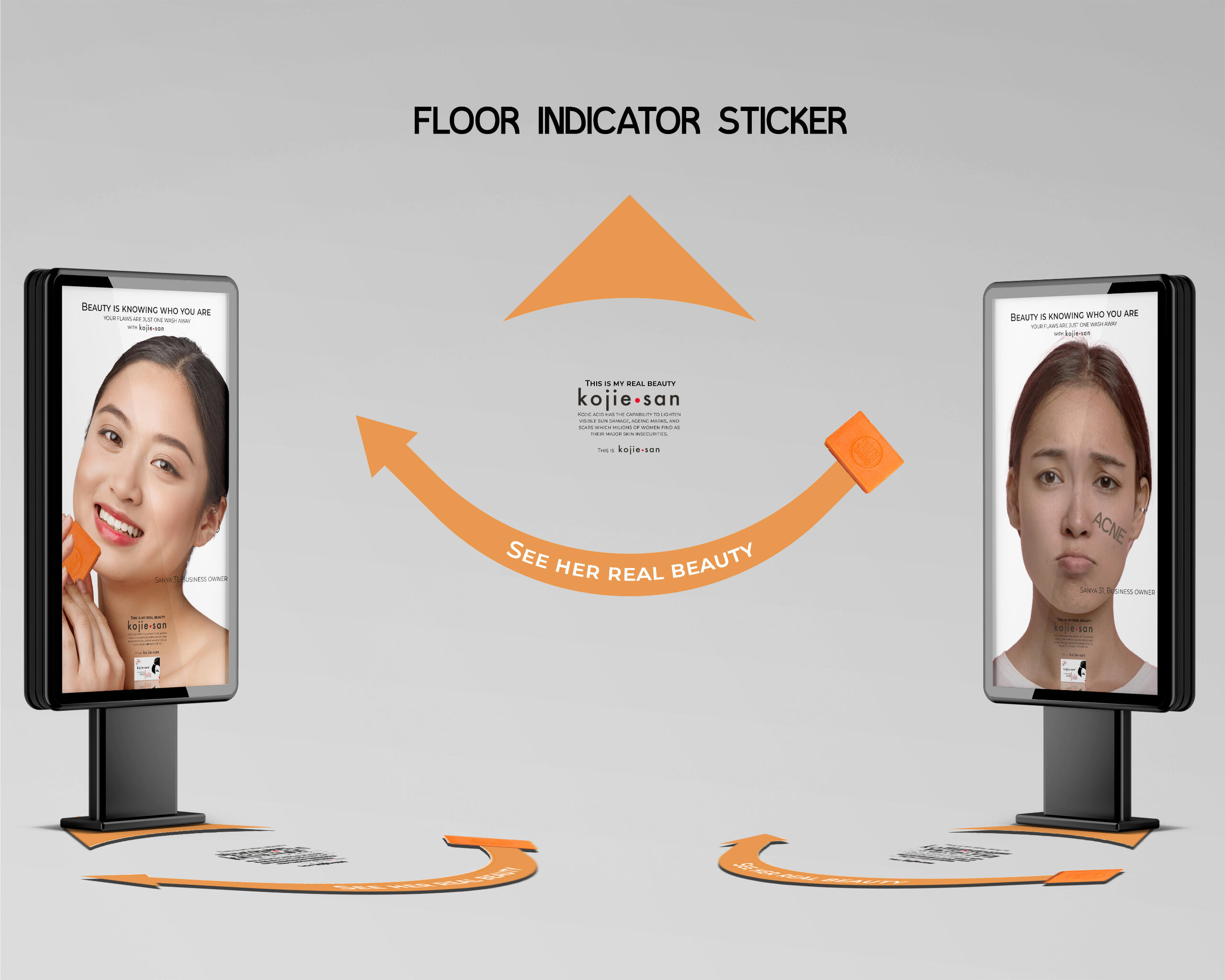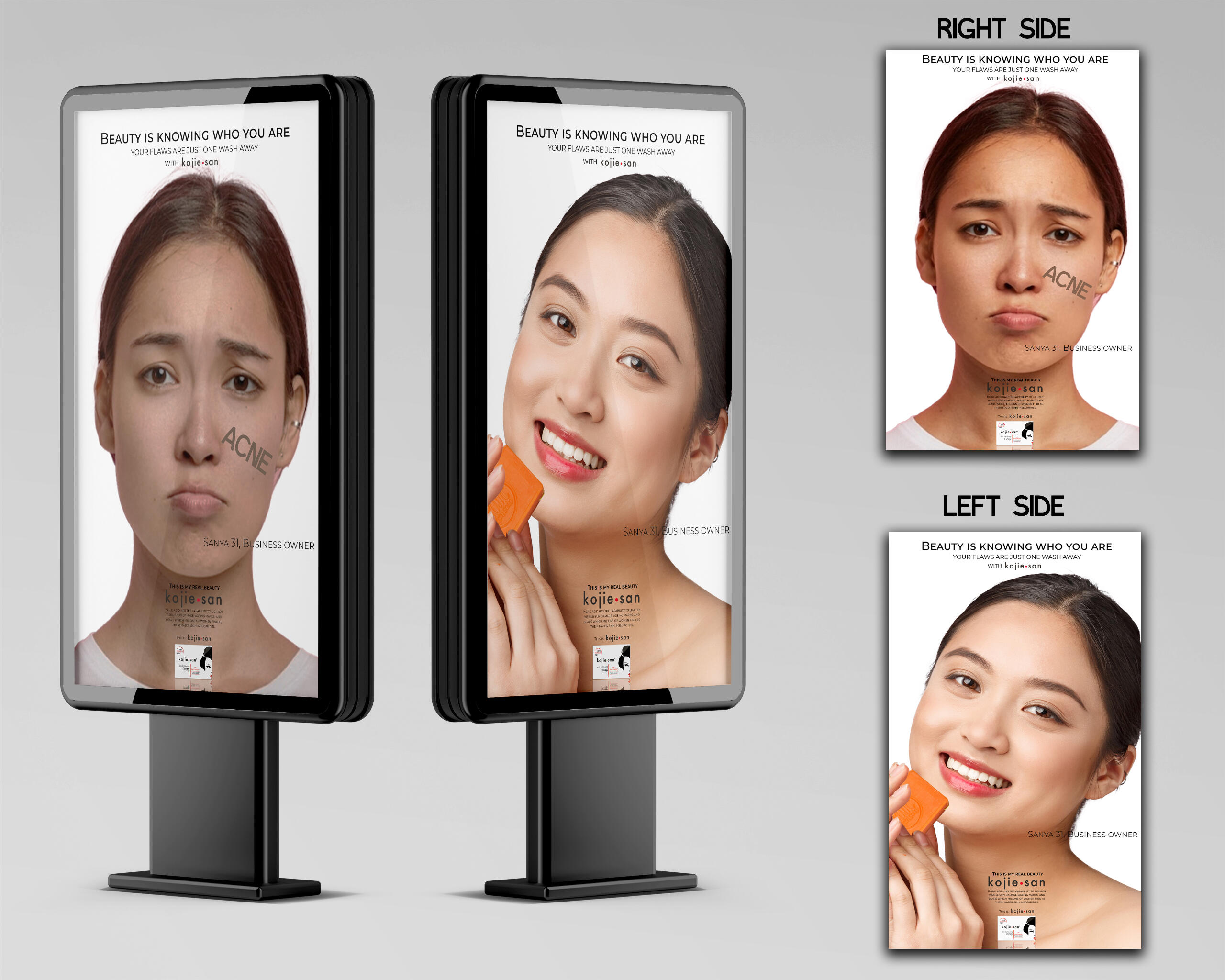 These are what my other teammates did. We also conceptualized a lenticular print where if you are in a certain angle, it's a different image. We used this to show the benefits and effect of Kojie-san.