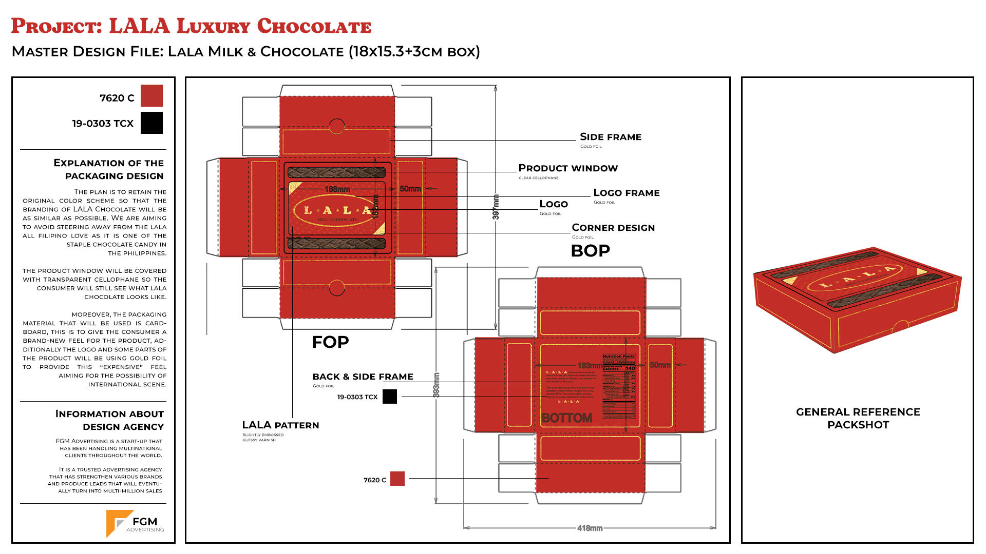 We were instructed to redesign a packaging of our chosen food brand and I chose LALA Chocolate.I went with a luxury approach as opposed to the original design of lala chocolate which has a vintage feel due to them not changing their design since their conception.We were also tasked to create a couple of advertisements for the new packaging.