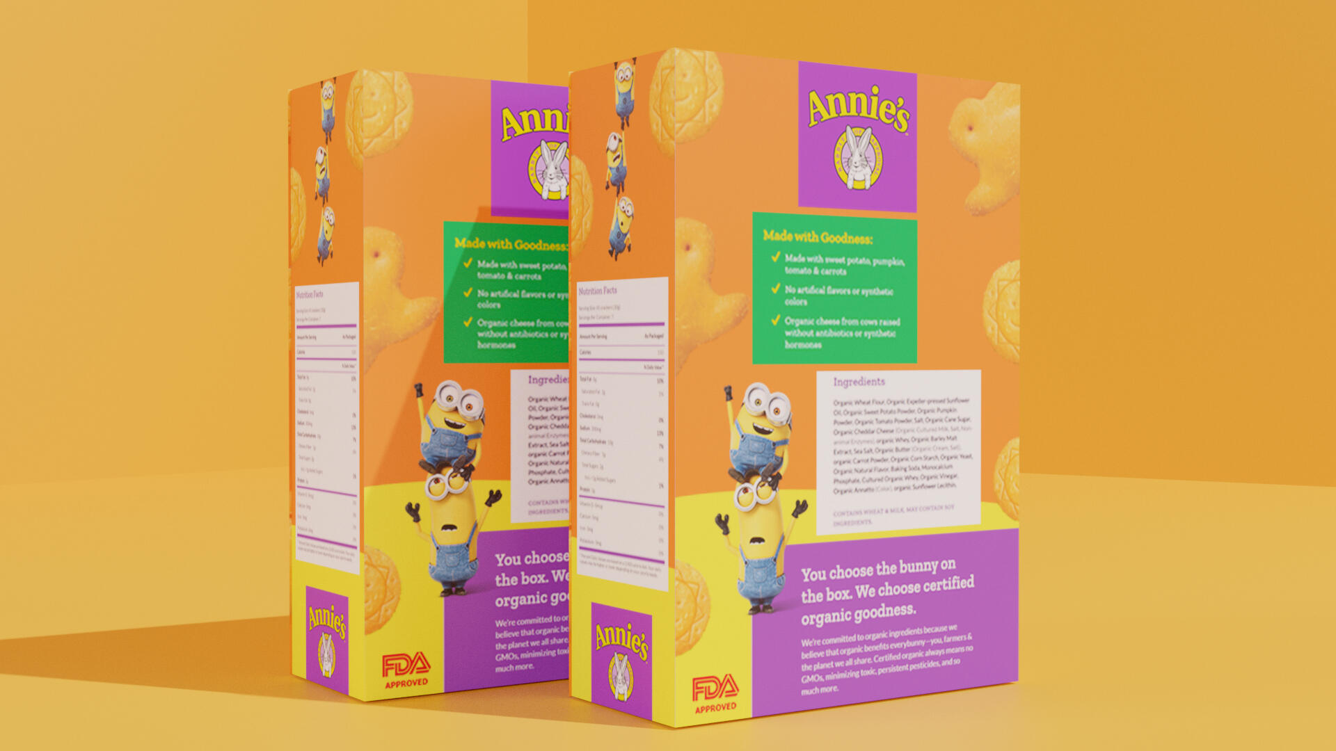 For this project, we are tasked to create a special promotion packaging for the brand Annie's.Since the target market for this brand are kids and parents, I went with the collaboration of Minions and Annie's to garner the attention of kids and increase sales and market.